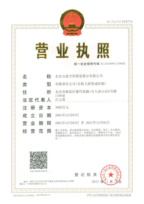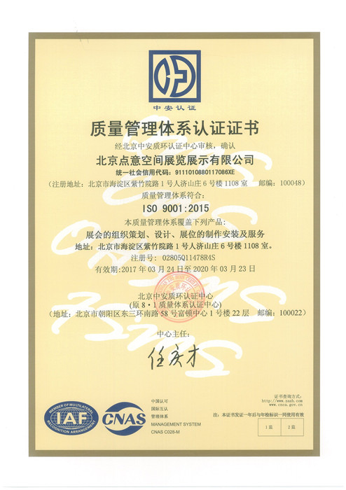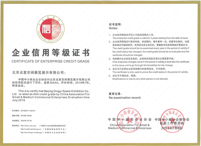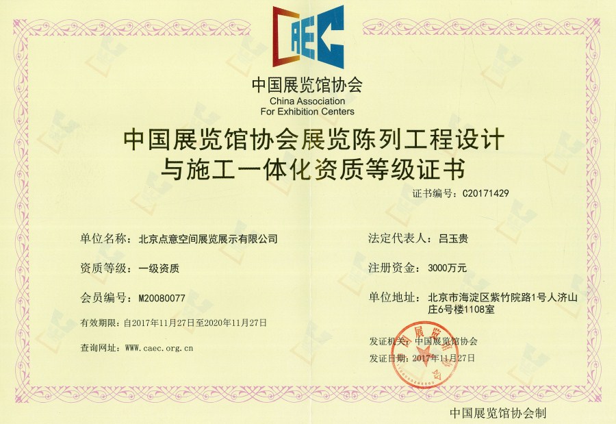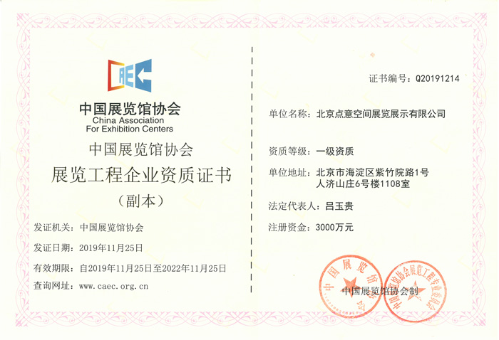 點意空間中國展覽館協會展覽工程企業資質證書一級資質