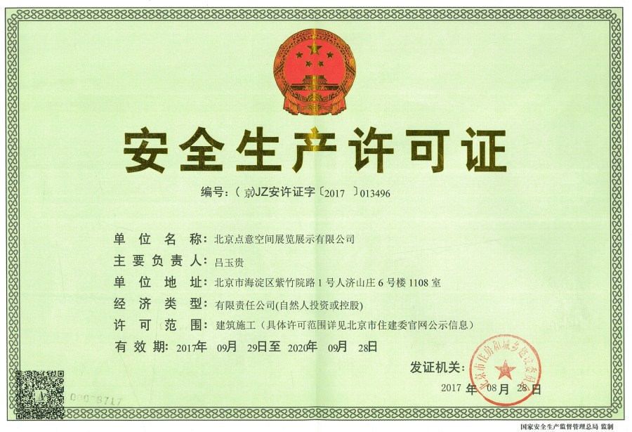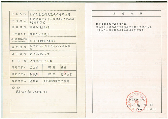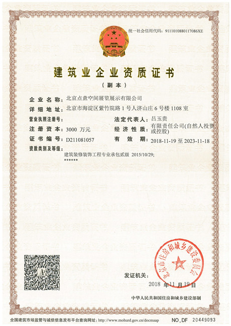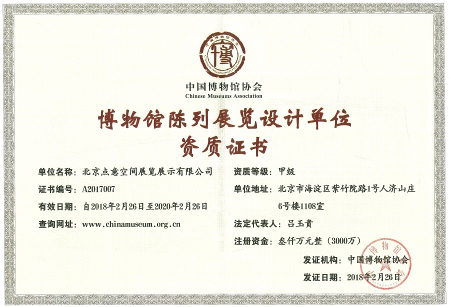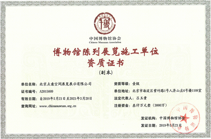 點意空間博物館陳列展覽施工單位資質證書壹級