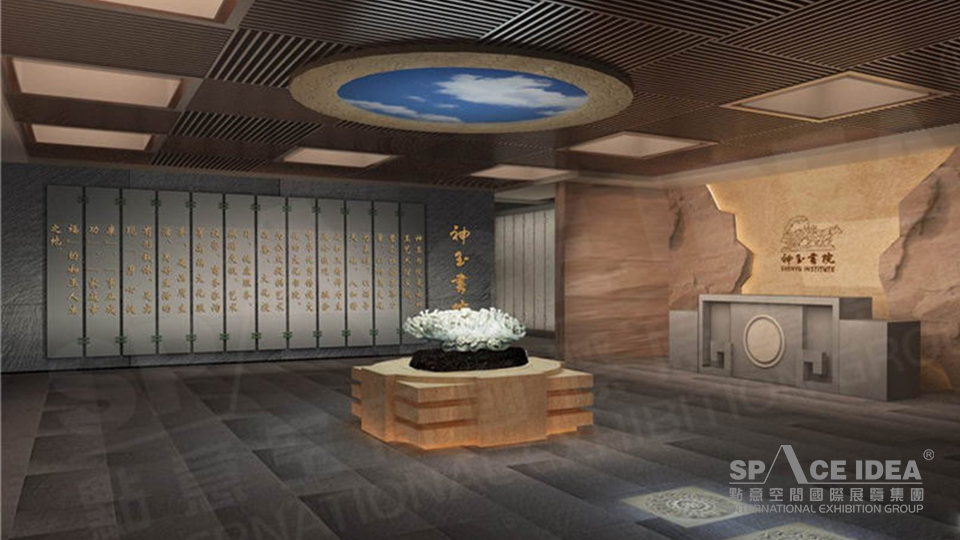 展廳保持原建筑結構,以最少的投入使觀者領會設計者所希望表現的神玉藝術館華夏之大氣、東方之文氣、吉祥之靈氣、精致之秀氣、皇家之貴氣,同時從場景和實物的組合中體會出以玉載道,以道立德,以德養心,以心明人,以皇家氣派作為主基調,以皇家御用珍品作為裝飾,感受玉對這個世界、對古人文學作品的影響,并感受玉經風霜雨雪,成良材美質;懷廣大心胸,和天地萬物;秉寬容感恩,悟人間正道;蒙慈悲仁愛,得如玉人生八千年時光中所積累的濃厚魅力。