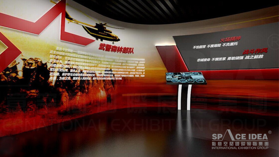 按照武警森林部隊的建設發展時間為主線脈絡(1948年8月至2014年12月),重點展示歷史沿革、領導關懷、輝煌歷程、英雄楷模、榮譽功勛等內容,并利用多媒體聲光電技術,使用體驗與互動相結合手段,增強史館的視覺沖擊力和藝術感染力,使參觀者體驗身臨其境的感受。