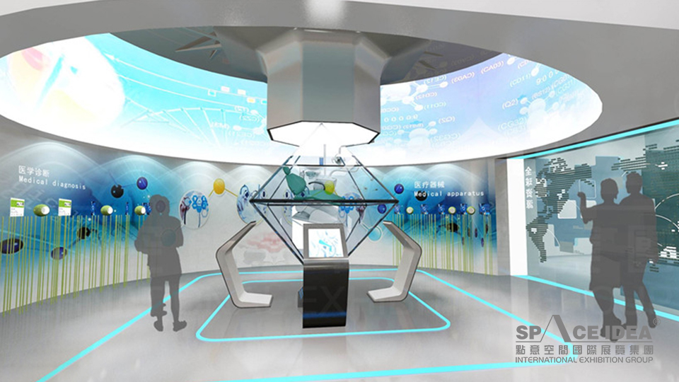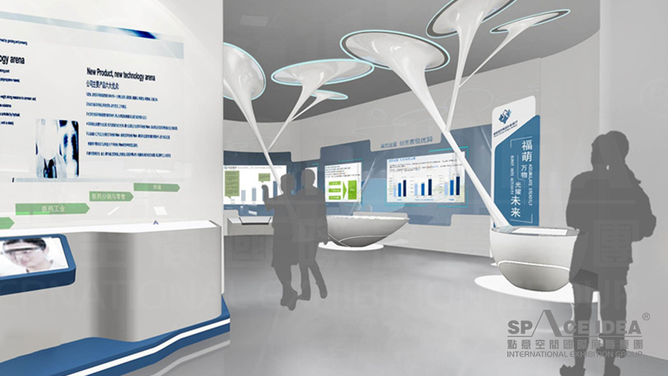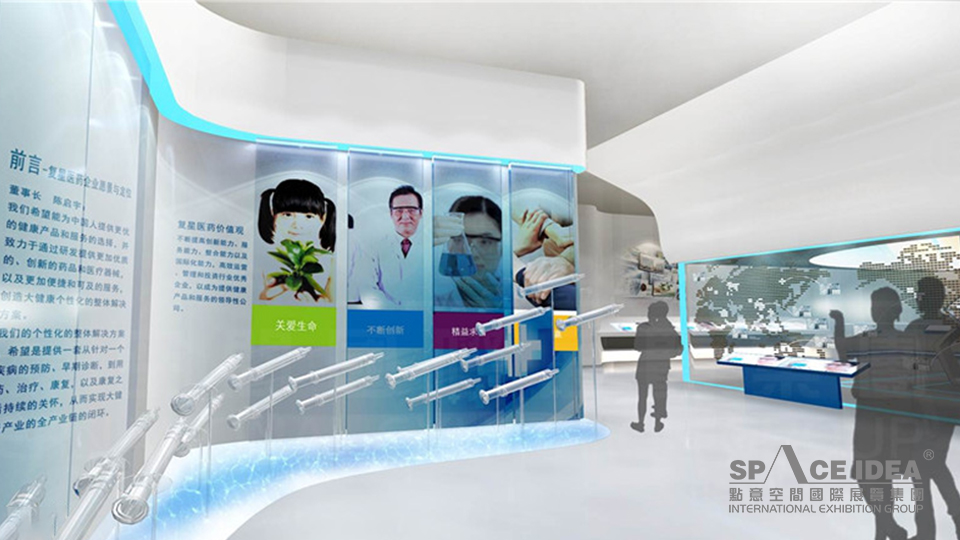 第一部分以“播種、發(fā)芽”為空間理念,設(shè)計(jì)造型,統(tǒng)一空間。通過圖文、視頻、互動(dòng)觸摸屏、實(shí)時(shí)數(shù)據(jù)更新等豐富的展示手段展現(xiàn)復(fù)星醫(yī)藥的企業(yè)文化及戰(zhàn)略布局。