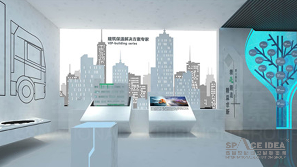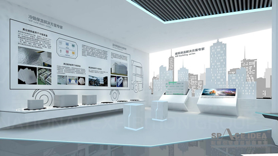 第二展示區:匠芯科技 點亮生活。通過維艾普保溫倉所輻射的四大產業:交通、生活、冷鏈、建筑等方面,體現維艾普的匠芯科技(展館的核心部分)。