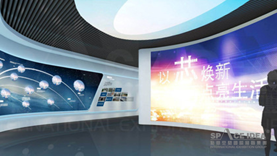 設計上以未來白為背景色,配合科技藍和生命綠鋪張整個展區,營造展示和諧舒適的展覽氛圍,色彩體系干凈、明亮,保證了色彩體系的完整性,又使整個展廳色彩飽滿,豐富活躍,暢快、大方,韻律感強。