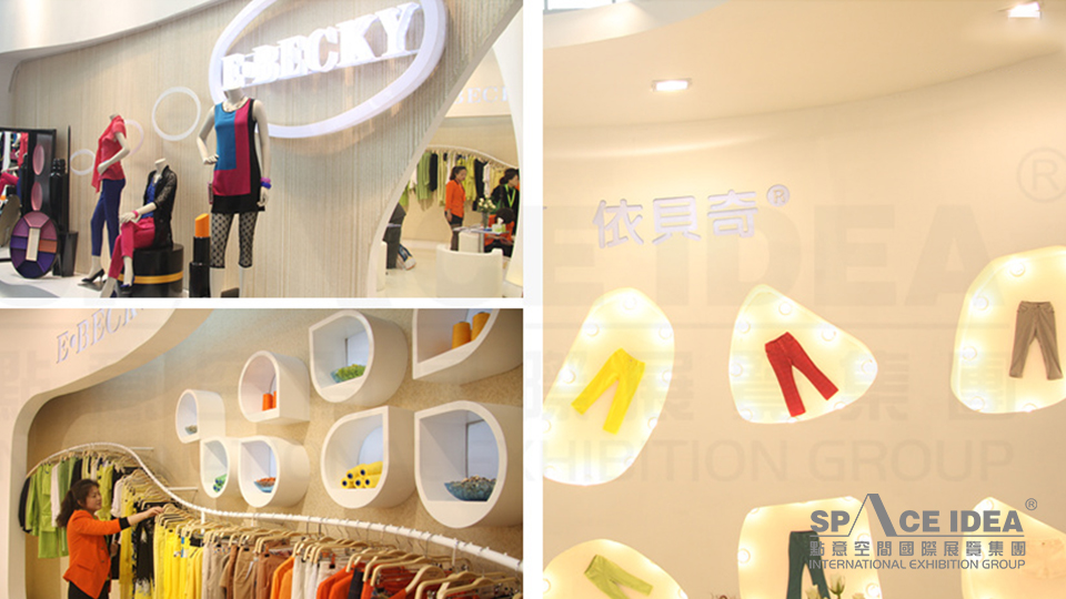 3、內(nèi)部設(shè)計延伸外部設(shè)計元素,是外部設(shè)計的延伸,局部點綴軟膜發(fā)光造型,并配合模特展示制造小型展項效果。側(cè)邊陳列展架隨著內(nèi)部結(jié)構(gòu)起伏鑲嵌其中,側(cè)掛為主,模特展示,正掛,疊放等各種方式展示為輔助。小品、接待臺、中導(dǎo)等陳列架,包括形象墻和櫥窗的設(shè)計取材外部結(jié)構(gòu),點綴以鏤空造型,使整個展位能夠融為一體。