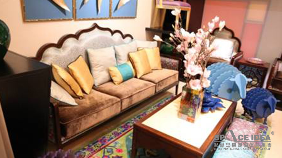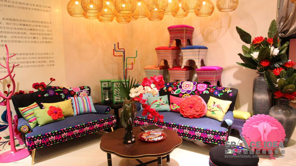 以羌繡形成的五彩繡片作為主要元素進行展區設計,突出主題展項。