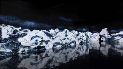 《VorticesofLightParticles》,以旋渦為主題,靈感源自光反射到瀑布的水流或巖石上的情景,在直徑30m、面積約500㎡的大空間里展現這一“自然風景”。